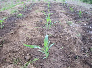 トウモロコシの苗が大きくなってきた。そして、午後から雨が降るとの前日の天気予報。こんなことからトウモロコシのポット苗定植をした。苗、大きさ的には十分である。