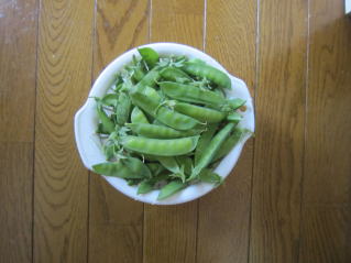 | ネギの雑草が目立ってきたので、雑草取りを兼ねて1回目の土寄せをした。 サヤエンドウの収獲をした。 |