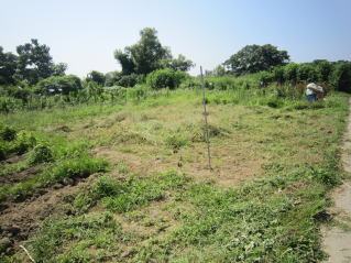 タマネギを植える箇所。草刈り機で雑草を刈りました。枯らしてから撤去し、耕耘です。2019.08.18 9:40
