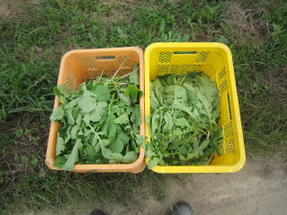 8月31日に種蒔きした大根の間引き作業を完了。間引きした大根葉を即席漬け物、煮浸しにしていただきました。