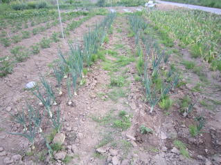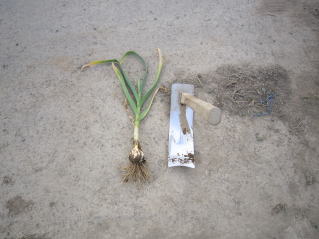 タマネギマルチ剥がし、ニンニクお試し収穫