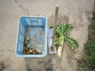 ジャガイモと大根のお試し収穫。2020.06.27 15:56