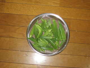 | 今回の収穫、オクラ。煮つけていただきました。2020.09.19 15:44 | |
