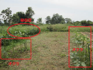 | まだある雑草ジャングル。秘伝豆救出のために雑草取り。2020.09.20 7:37 | 作業完了。オクラ、秘伝豆、奇跡的に無事でした。2020.09.22 13:28 |