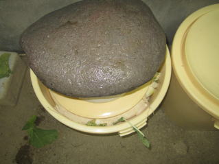 太いものをした気に置きながら米ぬかを入れる。2020.11.29 14:58 重石を置いて作業完了。20日くらいで食することできる。2020.11.30