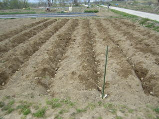 | 17日夕方から雨降りの天気予報。ジャガイモ植え付けにはグッドタイミングである。 天気予報通り、午後6時頃から雨が降ってきた。 春蒔き大根の種を蒔いた。 |