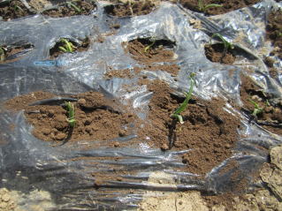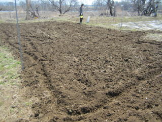 | タマネギ追肥と里芋、しそ蒔きのための耕耘 | |