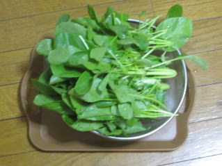 | 今日の収穫ニンニクの芽。2022.05.30 6:59 | そして間引きコマツナ。2022.05.30 7:00 |
