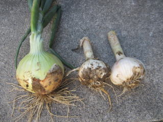ニンニク、タマネギのお試し収穫。