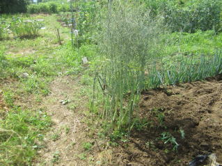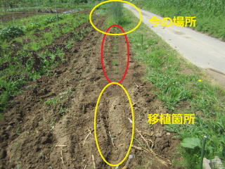 | 赤〇、今回定植。下黄色○、右写真アスパラを来春移植する。2022.06.25 9:02 | |