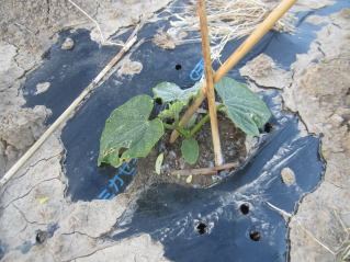 | 遅霜に何とか耐える?メロン定植 | |