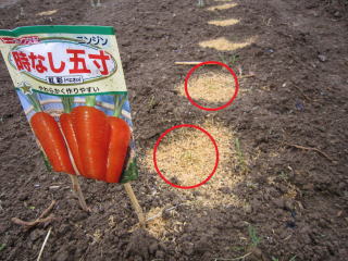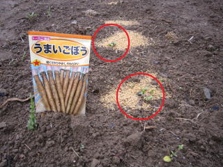 適量の降雨とここ2、3日の高温天気で芽出しゾロゾロ。ゴボウ、ニンジン、ナガイモ、里芋、豆の芽出し確認。