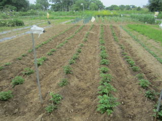 | ニンニク、キュウリ、ナス、小松菜、白かぶ、ニンジン、ゴボウ雑草取り。サヤエンドウ結実。ジャガイモ2回目土寄せ。 | |