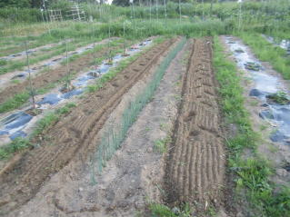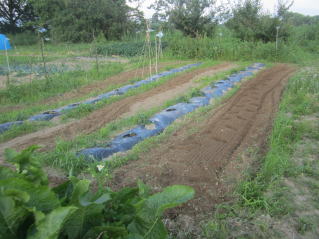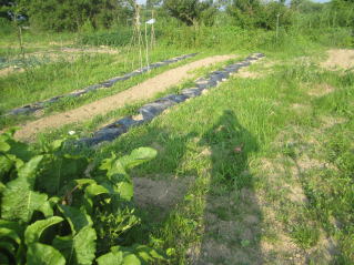 雑草が目立ってきた。手作業では間に合わないと思い、耕耘機を使っての雑草取りをした。効果絶大。取り残しは手作業で。