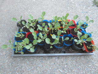 秘伝豆の種蒔き、キャベツ定植をした。