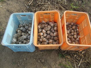 | 6月26日から雨天お天気予報。好天の6月25日がニンニク、タマネギ収穫のラストチャンス。雑草取りを兼ねての収穫、ようやく完了。 ナス、メロンの草取りを完了した。.残るは、里芋、サツマイモ、ナガイモである。 |