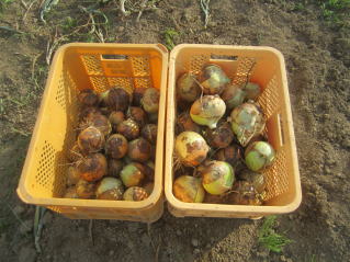 | ニンニク、タマネギ収穫。ナス、メロン雑草取り。梅干しの漬け込み。ジャガイモお試し収穫。 | |
