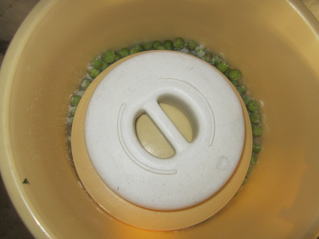 | 梅干し用塩漬け込み。2023.06.25 17:27 | ジャガイモお試し収穫。まだ小さい。2023.06.25 8:28 |
