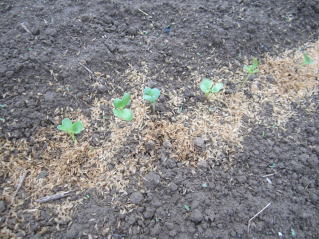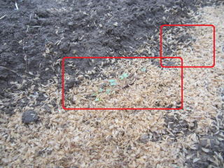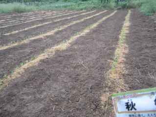 9がつ日種蒔きした秋大根、山形青菜の芽出し確認。種蒔き後、その晩の降雨。見込み通りの芽出しであった。
