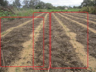 | 遅れていた大根間引き。例年、大根間引きは9月中旬。間引き大根を煮びたしに食しているが、大根間引きのタイミングを逸していた。 ニンニク、越冬五月菜の発芽を確認。 |