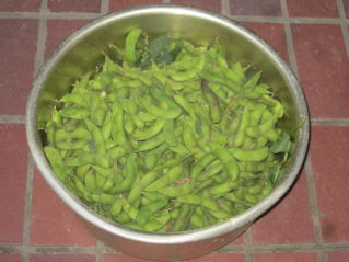 | 収穫した秘伝豆。2023.10.08 15:50 | 実を枝から取る。.2023.10.08 16:57 |
