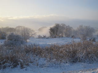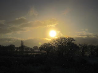 おらホの家庭菜園、久々に白い世界。2024.01.08 7:45 おらホの家庭菜園に日が昇る。2024.01.08 7:45