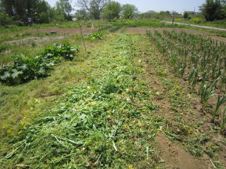 | 里芋植え付け完了。クキタチナ箇所耕耘。昨シーズン放置箇所の雑草取り。春ゴボウ収穫。 | |