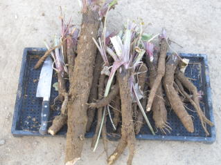 越冬春ゴボウ収穫。2024.05.03 5:54 サヤエンドウ支柱建て完了。2024.05.03 16:08