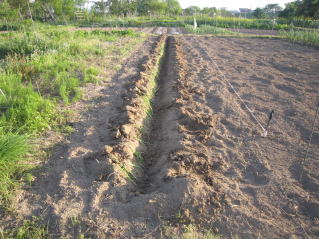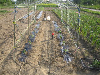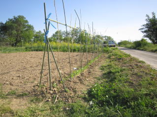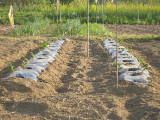 苗もの定植全部完了。(メロン、ナス、シシトウ、ネギ、キュウリ、ミニトマトそしてサツマイモ)春ゴボウ収穫。サヤエンドウ支柱立完了。ジャガイモ芽出し確認。