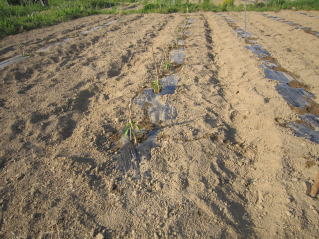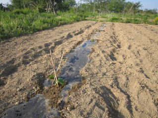一気の苗もの定植。毎日乾燥状態であるが、5月7、8日が前との天気予報。この機を逃しはならない。