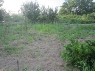 定植期、秘伝豆。2024.06.22 5:21 この箇所に定植。これでも雑草を取っていた。2024.06.22 5:21
