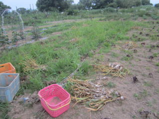併せて、ニンニクの収穫。この機を逃すとニンニクが実割れしてくる。