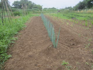 秘伝豆の定植絶好機と判断。23日早朝からの雑草取りから始まって秘伝豆定植完了した。