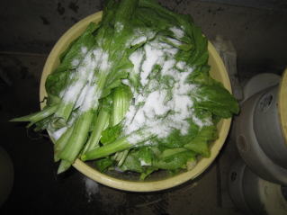12月1日に収穫した青菜を漬け込みした。亡き父母の漬け込みを思い出しての作業。小生の野菜漬け込みは父の作業であった。