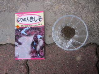 例年シソの発芽状態が悪いので、今年はポット種蒔きして苗づくりにチャレンジ。単は比較的安価である。