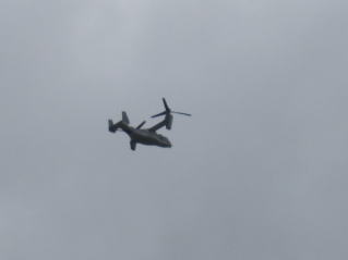 ヘリコプターの爆音がしてきたと空を見上げたら、なんとオズプレイ。いやな世になってきた。2025.04.13 11:00