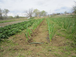 タマネギ、ニンニク雑草取り。ニラ順調。