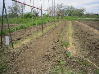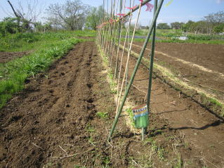 追掛けれれる様な農作業。彩エンドウの支柱立をした。