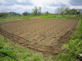 夏野菜植え付けするための耕耘。ここに黒マルチを張る。2025.05.04 12:03