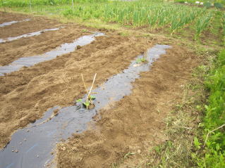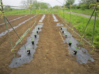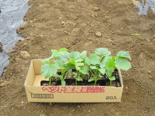 | 里芋植え付け、キュウリ、プリンスメロン、ミニトマト、ズッキーニ植え付け | |