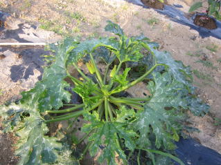 | ズッキーニ全体。2025.06.19 17:57 | 収穫したズッキーニの。2025.06.19 19:54 |