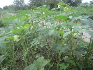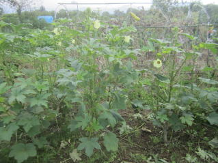 オクラ最盛期。2025.09.15 8:45 花満開。2025.09.15 8:51