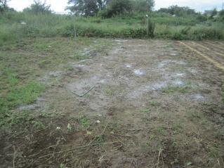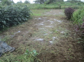 雑草を除去。コンテナ部は雑草で覆われていた。2025.09.15 7:32 ニンニクの箇所。石灰を蒔いた。2025.09.15 8:47