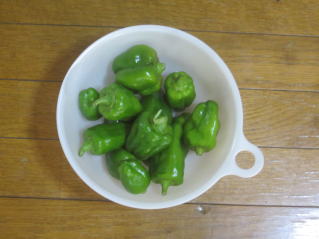 中2本、ピーマン。今年は、小さめだった。2025.09.15 8:51 今日の収穫。2025.0915 9:45