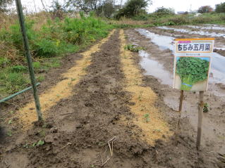 | ニンニク越冬前。2025.11.03 9:11 | クキタチナ、もう少し早く種まきすればよかった。2025.11.03 9:11 |