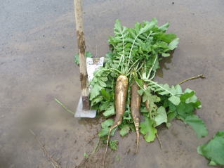 | 雨中の秋野菜収穫。 |