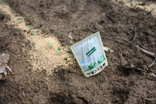 C間隔は3センチくらい。間隔が短かすぎると余計に間引きしなければならなくなります。種が高価なのでもったいないです。
