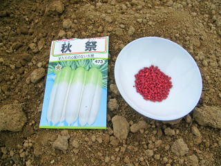 蒔き時はおらホでは昔から9月1日と決まっています。9月1日に地元町内で「風(かざ)まつり」といって八幡様の太鼓を打ち鳴らす伝統行事が行われますが、この日を基準にして秋野菜の種蒔きが行われてきました。ちなみに9月1日は山形青菜、この1週間前には白菜が種蒔きされます。