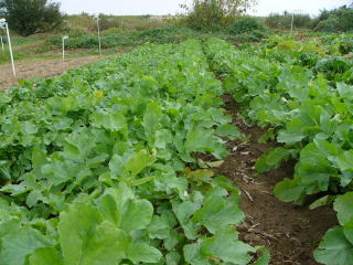 収穫を待つ青首大根。