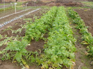 秋大根大きくなりました。左2列が青首大根、右2列が